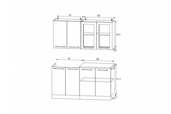 | Высота верхних шкафов (мм) | 685 |