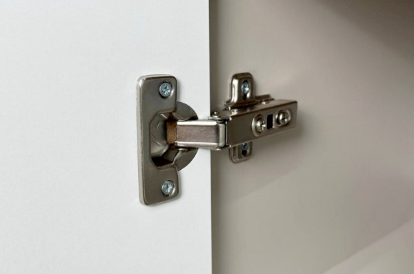 Корпус шкафа изготовлен из ЛДСП, что гарантирует прочность и долговечность. Фасад, покрытый МДФ в плёнке ПВХ, не только выглядит эстетично, но и защищает шкаф от повреждений. Особое внимание заслуживает фрезеровка фасадов, которая придаёт шкафу изысканный вид.
